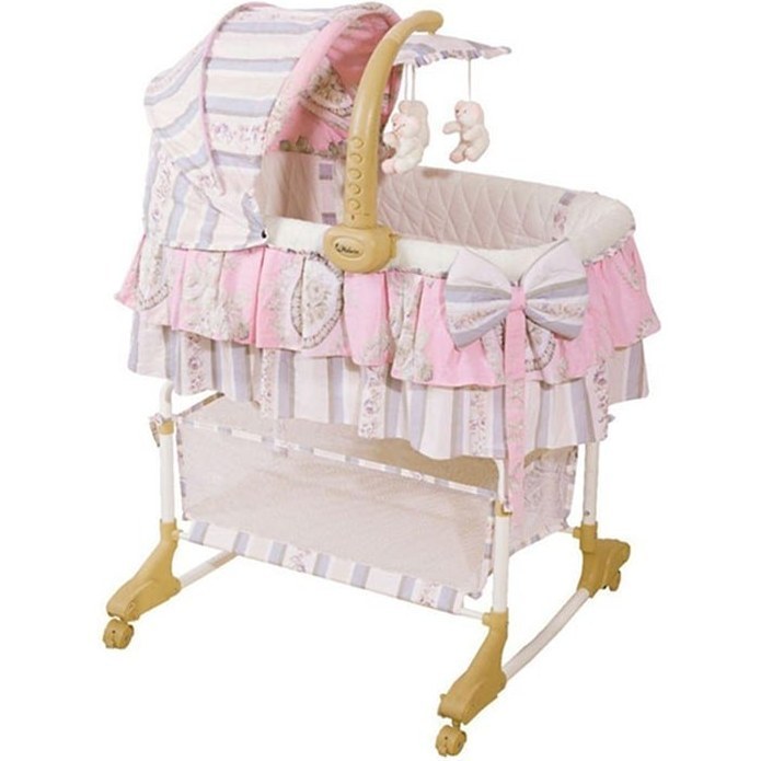 پایه‌های این گهواره دارای چرخ است (حالت تخت چرخدار).