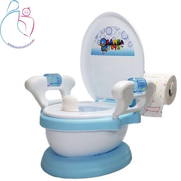 توالت فرنگی موزیکال سامیا تویز samya toys یک توالت فرنگی کودک با طراحی بسیار خاص و شیک می باشد. این محصول موزیکال بوده و با هر دکمه تعبیه شده در قسمت فوقانی محصول شروع به پخش موزیک می کند.رنگ های شاد با دسته های چشم نواز نورانی و عکس زرافه ای که بر روی محصول می باشد استفاده از آن را برای کودکان جذاب خواهد کرد. جنس خوب پلاستیک که برای پوست لطیف کودکان طراحی شده است از مزیت های این محصول می باشد. دسته های تعبیه شده ی توالت فرنگی نوزاد و کودک جدید سامیا تویز باعث حفط تعادل کودک شما خواهد شد. لگن این محصول به راحتی جدا شده و قابلیت شستشو دارد. این محصول فاقد هر نوع مواد غیر مجاز شیمیایی که به پوست کودک شما صدمه بزند.