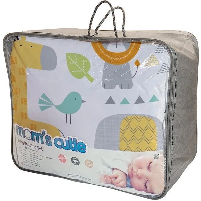 نقد و بررسی تخصصی ست خواب نوزاد برند مامز کیوتی مدل 4 تکه طرح گاردن فیل و زرافه مامزنینی