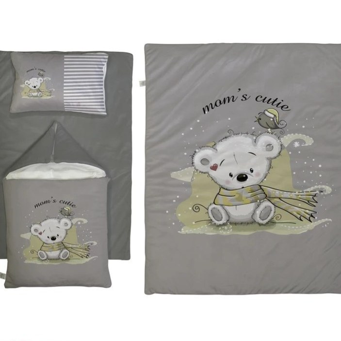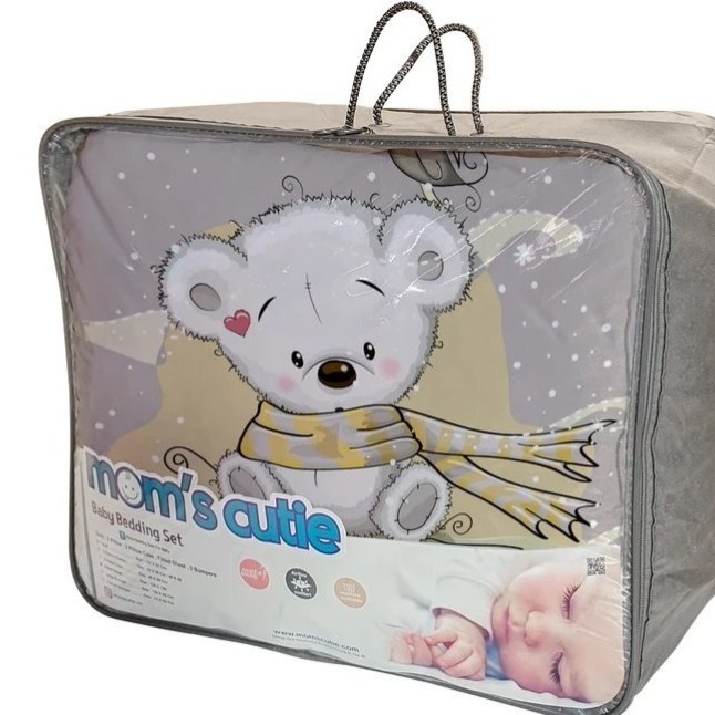 نقد و بررسی تخصصی ست خواب نوزاد برند مامز کیوتی مدل 4 تکه طرح کوالا رنگ طوسی مامزنینی