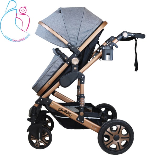 این کالسکه دارای کمک فنر در دو طرف کالسکه جهت آسایش کودک داخل کالسکه میباشد.