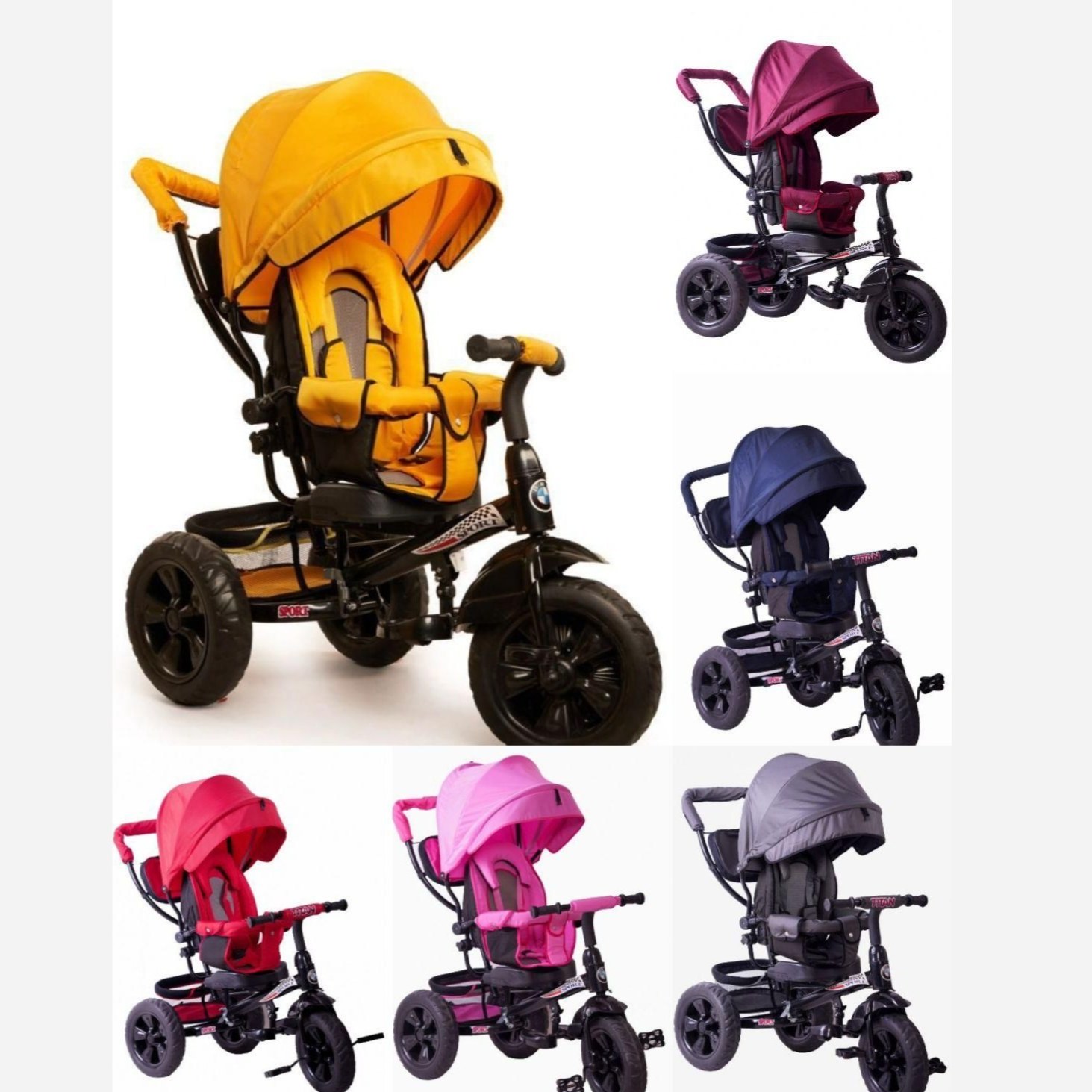 این سه چرخه تاشو به نوعی کالسکه تاشو هم گفته می شود. سه چرخه تیتان مدل تاشو به دلیل تا شدن از وسط به راحتی قابل حمل و جابه جایی هستش و با دارا بودن دسته هدایت والدین میتوانند سه چرخه را کنترل کنند. این سه چرخه دارای سایبان و جاپایی قابل جدا شدن که از 9 ماه تا 3 سال( تا وقتی که کودک از پدال استفاده کند) قابل استفاده می باشد و گارد محافظ کودک، سایبان،هم هست. سوپر تیتان تاشو را به راحتی می توانید در صندوق عقب خودروی خود جای دهید. این 3 چرخه تاشو دارای ابعاد 132x52x96 سانتی متر و وزن 10٫5 کیلوگرم می باشد. جنس چرخ ها پلاستیک EVA هستند. سه چرخه تاشو تیتان دسته کنترل والدین دارد که با آن والدین می توانند هدایت سه چرخه را به عهده بگیرند. دارای یک جا پایی متحرک است و وقتی کودک توانایی پدال زدن را پیدا کرد این جا پایی جدا می شود و کودک خود هدایت سه چرخه را به عهده می گیرد.