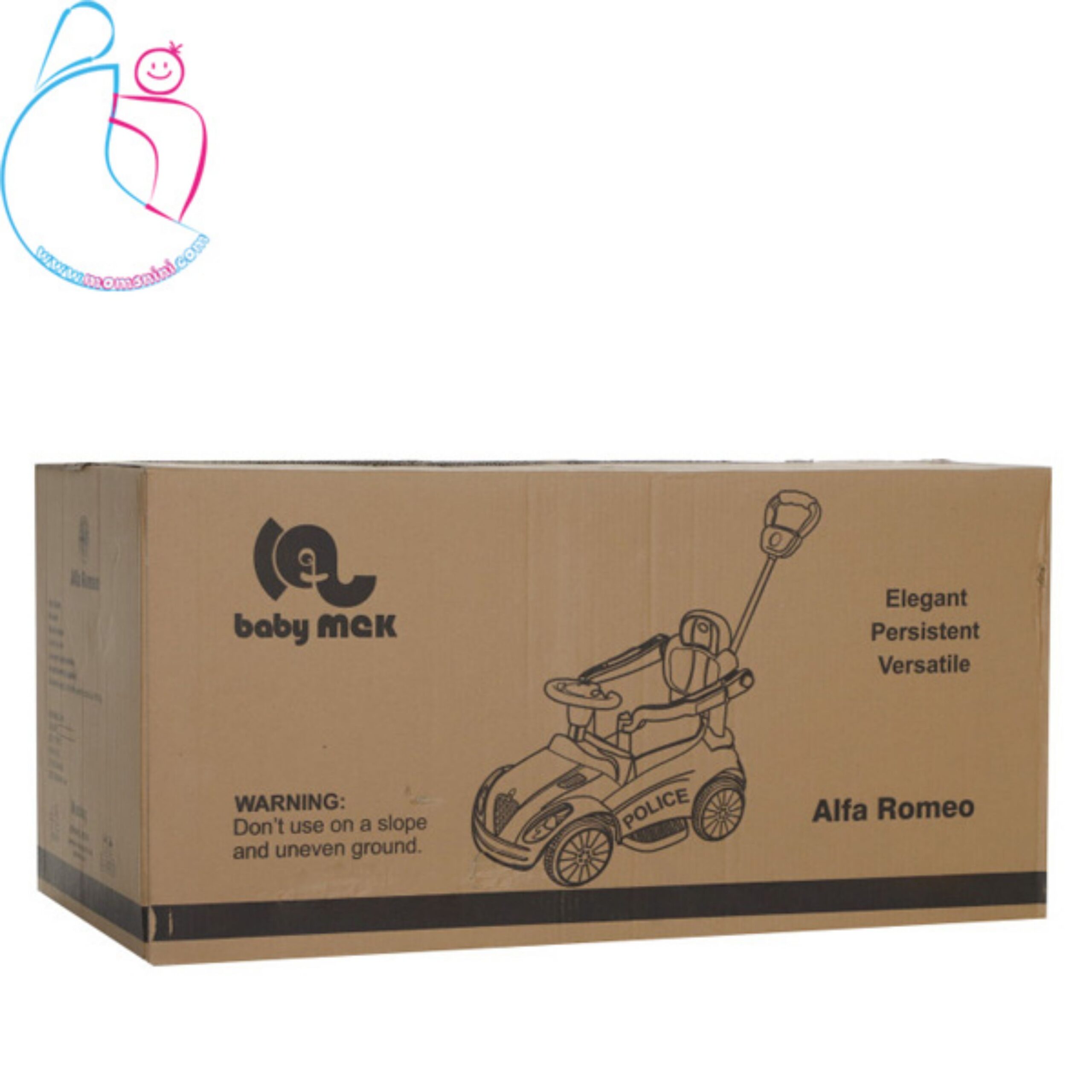 - مناسب کودکان : 1 تا 5 سال دسته هدایت والدین: دارد حفاظ صندلی: دارد زیر پایی: دارد ابعاد: 77×40×55 سانتیمتر نحوه کنترل و فرمان: اهرم هدایت فرمان قابلیتهای صوتی: موزیکال سایر توضیحات: – جنس: پلاستیک پلی پروپیلن (P.P) – مناسب سنین 2 تا 5 سال – ظرفیت وزنی: 20 کیلوگرم – دسته فلزی با طول 60 سانتیمتر – پخش صدای موزیکال با فشردن دکمه روی فرمان (منبع تامین برق: 2 عدد باتری قلمی) – کنترل توسط والدین (دسته متصل به ماشین) – فرمان بدون قابلیت چرخش چرخها – باز و بسته شدن دستههای کنار صندلی – دارای محفظه زیر صندلی – وزن چهار چرخه: 5.5 کیلوگرم