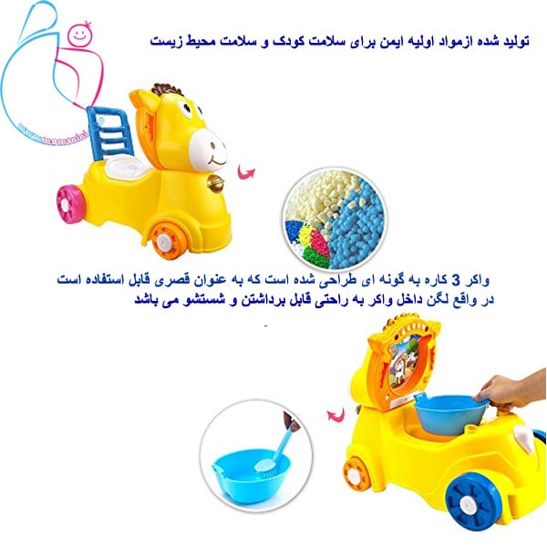 - قابل استفاده به واکر قدرت:حالت ماشین که کودک با نشستن روی آن با کمک پاها حرکت میکند
