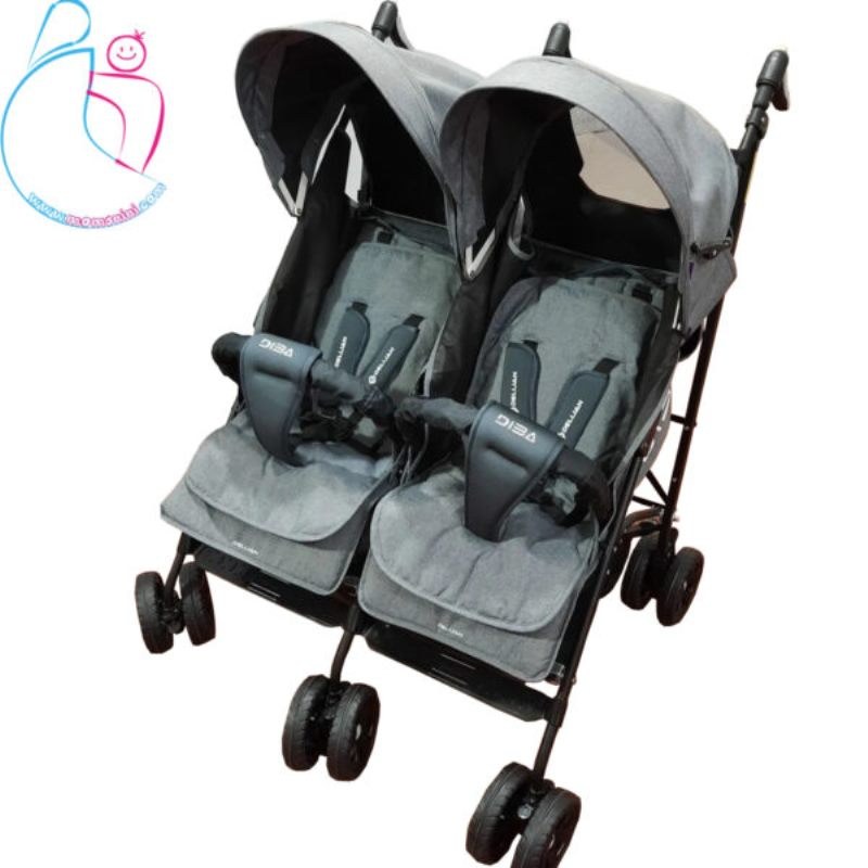 نقد و بررسی تخصصی کالسکه دوقلو عصایی دیبا پلاس دلیجان رنگ طوسی مامز نینی