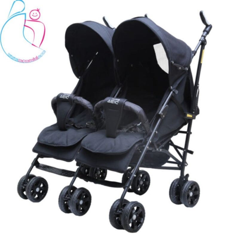 دارای دو نشیمن‌گاه مجزا با اندازه مساوی چرخ‌های جلو با قابلیت چرخش 360 درجه دارای 12 عدد چرخ پنج پره با روکش EVA دارای سبد جهت قرار دادن لوازم کودک مجهز به قفل جهت ممانعت از حرکت چرخ‌های عقب چرخ‌های جلو با قابلیت ثابت در حرکت گردان مجهز به کمربند ایمنی جهت حفظ ایمنی کودک در 5 نقطه مجهز به دو سایبان مجزا جهت جلوگیری از تابش مستقیم خورشید